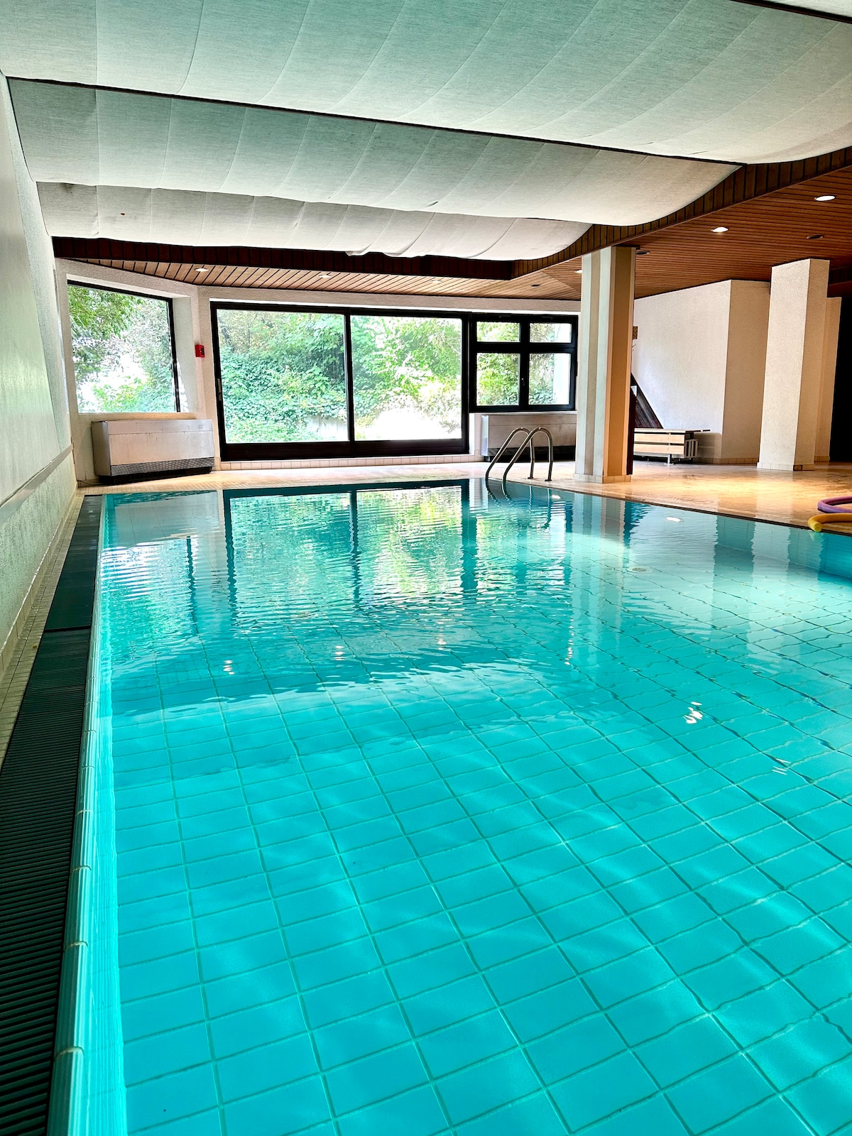 Top floor. Quiet street. And yes — a private indoor pool in the building. This bright 45 m² apartment on the 4th floor is one of the very few Wiesbaden stays with pool access (5×12 m, open 6 AM–10 PM). King-size bed, private balcony, fully equipped kitchen, 100 Mbps Wi-Fi and 43″ Smart TV. 10 min walk to the Kurhaus, 15 min to the old town, 2 km to the main station — Frankfurt in 40 min. Perfect for business trips, weekend stays, and anyone exploring Wiesbaden.