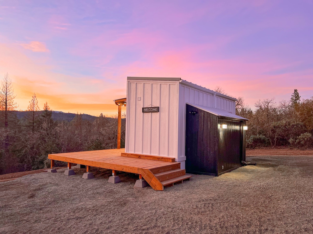 Goditi il fascino di soggiornare in un piccolo chalet nella foresta, circondato dalla natura e arredato con stile e cura nei dettagli. Si tratta di una minuscola baita, ma ha tutto l'essenziale necessario per il tuo soggiorno. Ottima posizione nella periferia della città (8 minuti da Merlin e 15 minuti da Grants Pass). L'accesso più vicino al fiume è a soli 10 minuti di distanza, a Matson Park! Dopo una giornata di esplorazione, goditi la vasca idromassaggio con vista sul bosco o ammira le stelle vicino al focolare condiviso. Perfetto per una piccola vacanza in coppia!