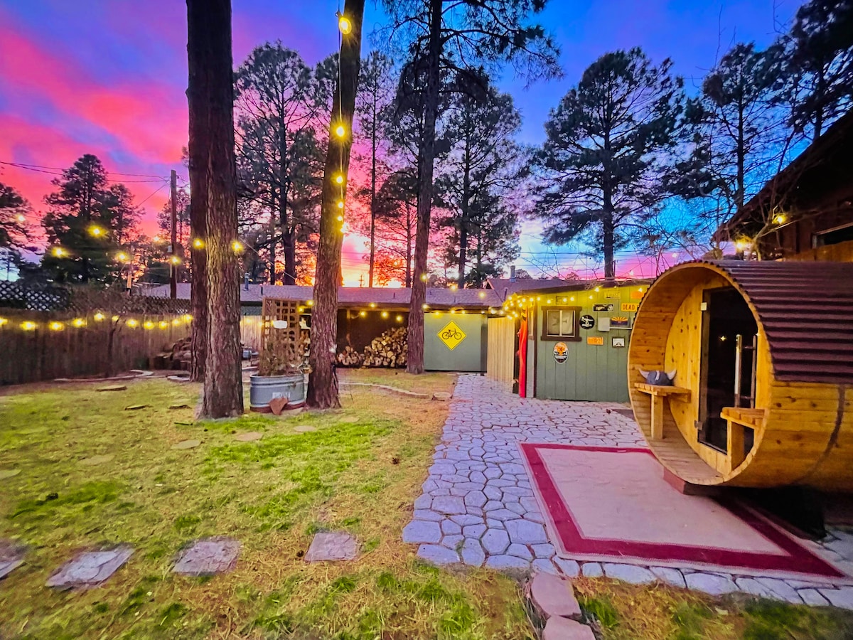 Nascosto in una tranquilla strada senza sbocco, il nostro incantevole cottage nella foresta si trova su 5 acri di bellissimi pini e dista solo 5 minuti dal centro. La nostra struttura confina con l'Urban Trail System, quindi puoi fare escursioni a piedi o sciare fuori dalla porta; il cottage dispone di una sauna privata in cedro, una cucina completamente attrezzata, un letto king-size Tempur-Pedic e un patio esterno privato. Questo è il rifugio perfetto nella pineta, che offre comunque un facile accesso a Flagstaff, Sedona e al Grand Canyon. Vivere a Flagstaff al meglio!