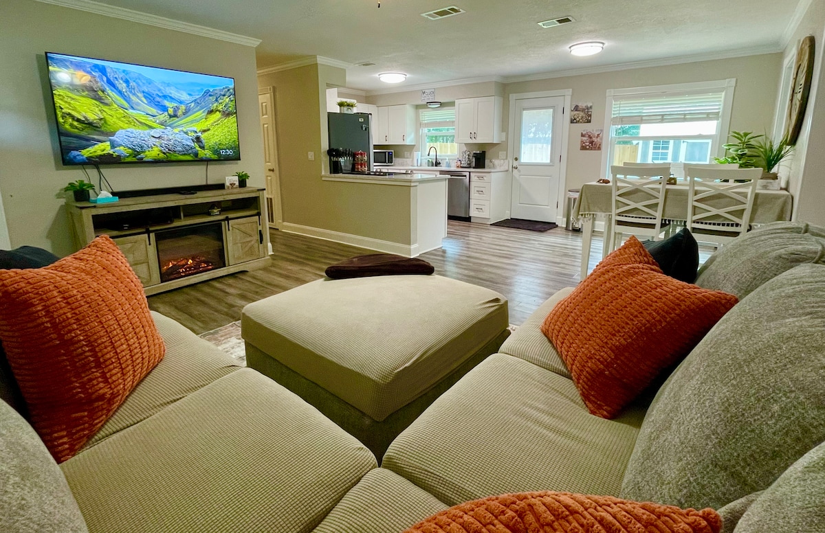 ★King size bed. ★ Dedicated work space ★High Speed WIFI. ★ Stone fireplace ★Air purifier. ★ LG 60" tv ★Turn on LG tv by pressing the red buttom on the control then press " Home button" (the house shaped icon) on tv control to access apps and LG Live TV channels. Perfect for Winter & Seasonal Stays (Jan–March) Ideal for guests attending Ocala’s horse show season, snowbirds, or professionals seeking a quiet, fully furnished home for 2–3 months.