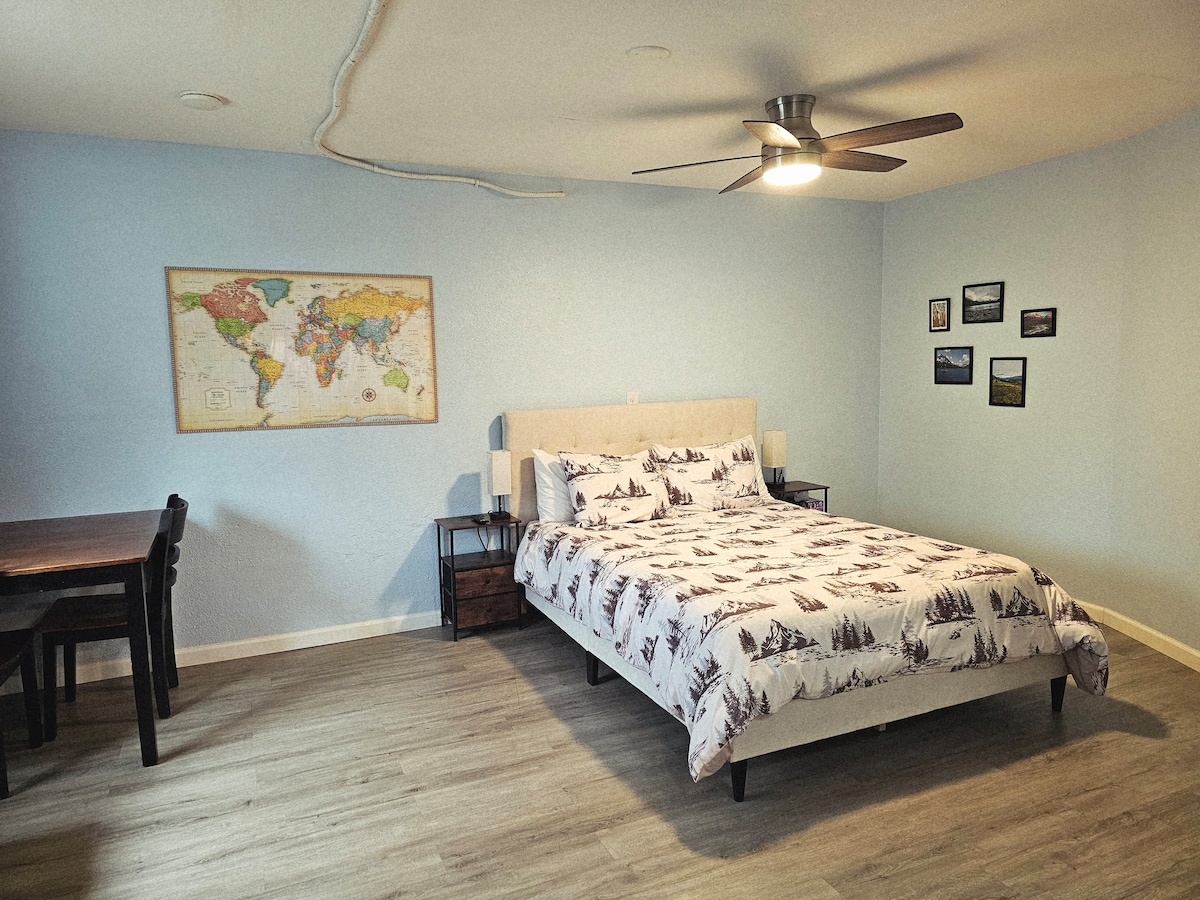 Questo monolocale si trova in un quartiere tranquillo su una scogliera con vista. È dotato di bagno completo e cucina. L'ambiente accogliente e dolce offre un meraviglioso rifugio dopo una lunga giornata trascorsa esplorando l'Alaska. Con un ingresso privato e un parcheggio designato, è una meta perfetta. Situato a soli 10 minuti da negozi di alimentari, stazioni di servizio e dal centro di Palmer, questo appartamento offre facilità e comodità durante il soggiorno. Inoltre, goditi le numerose escursioni e opportunità di visite turistiche nelle vicinanze!