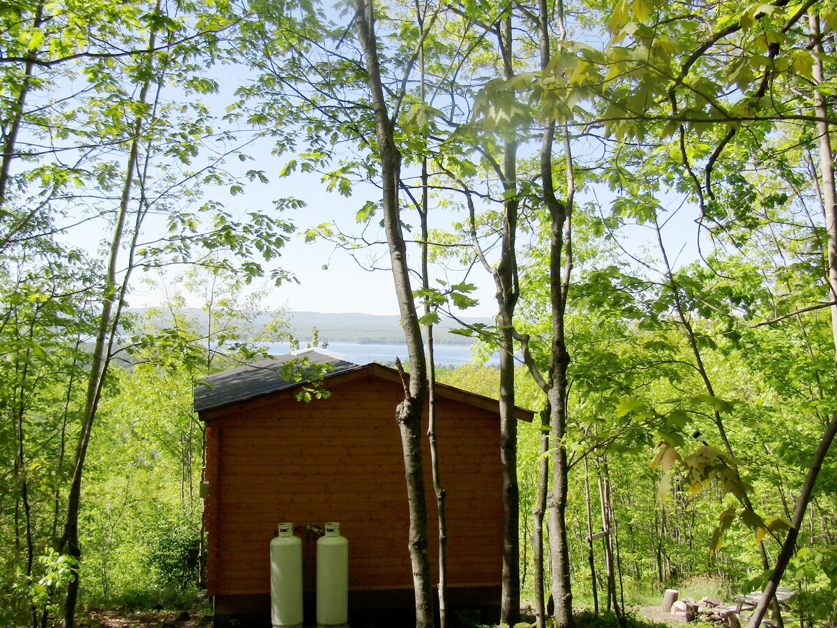 Questo rustico chalet a energia solare dispone di un proprio sentiero escursionistico privato (100 m, collina ripida) e di un parcheggio privato. Il sentiero si snoda fino alla tua vista privata che si affaccia sul Golden Lake. Ti sentirai nascosto in questo accogliente luogo circondato da una foresta di querce miste, in cima alle formazioni rocciose dello scudo canadese. Sono inclusi un camino a propano, un letto a castello matrimoniale, un barbecue, una terrazza coperta, un tavolo da picnic e un braciere. NON VUOI TRASCINARE UN FRIGORIFERO SU PER UNA COLLINA? Visita il nostro sito web per i pacchetti: Attrezzatura, biancheria da letto e/o chalet per coppie.