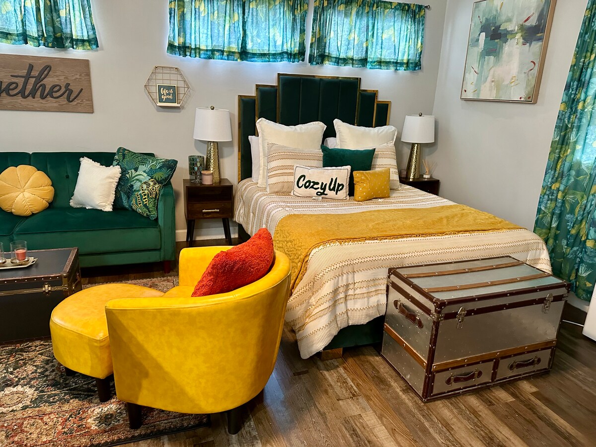 Private pool house at Scarborough House in rural Stantonsburg, 20 min to I-95 and Wilson, 25 min to Greenville, 30 min to Rocky Mount. PRIVATE guesthouse. Pool is a SHARED outdoor space used by other guests on the property. Multiple rentals on site. Please be respectful. Located inside the fenced pool area and not suitable for small children. No swimming alone. Queen bed, kitchenette, smart TV, large shower and bath. Quiet countryside setting.