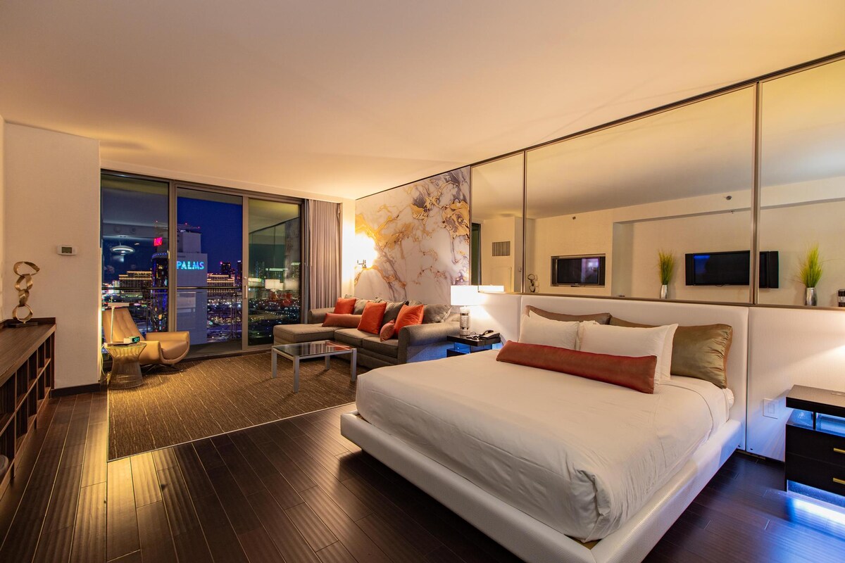 La posizione più comoda vicino alla Strip! - Parcheggio custodito gratuito/ Nessun costo del resort! Vieni a vivere il lussuoso Palms Place! Si tratta di una suite monolocale di lusso di 615 piedi quadrati di proprietà indipendente e privata, con balcone privato e vista sulla striscia di Las Vegas. Vieni a soggiornare nel tuo residence privato di lusso, mentre visiti Las Vegas. Hai anche pieno accesso al centro fitness e alla piscina privata, situata al 6 piano.