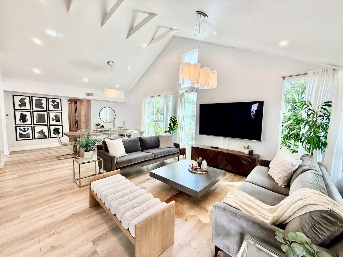 Ti diamo il benvenuto nella nostra casa di lusso, progettata con grande attenzione ai dettagli e creata per il tuo comfort. Questa suite con 3 letti e 2,5 bagni include una lavatrice/asciugatrice, un Chemex, un asciugacapelli T3, un materasso atossico e prodotti da bagno ecologici di alta qualità. Può anche essere attrezzata con tutto il necessario per le famiglie, da una culla da viaggio a giocattoli e un vasino. Situata in posizione centrale vicino a tutto ciò che Los Angeles ha da offrire, questa casa dispone anche di aree esterne private e comuni, che la rendono perfetta per esplorare e trascorrere il tempo libero.