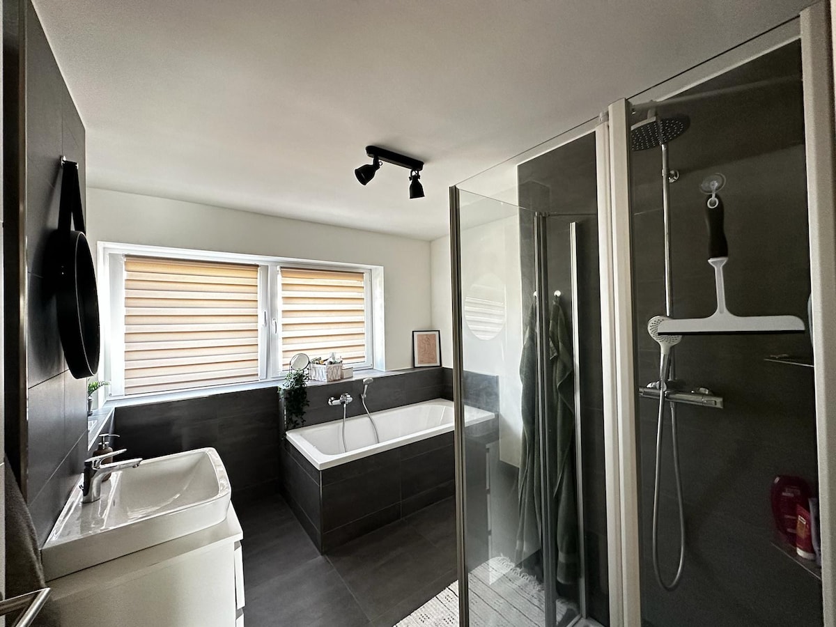 Moderna maisonette nel centro Il nostro appartamento di 85 m² su due piani offre tutto il necessario per un soggiorno rilassante. Piano inferiore: un corridoio e una cucina completamente attrezzata con zona pranzo e lavatrice/asciugatrice. Piano superiore: soggiorno con divano letto, smart TV da 55" e spazio di lavoro opzionale, Wi-Fi a 250 Mbps e camera da letto con letto matrimoniale e armadio. Il bagno è dotato di servizi igienici, doccia, vasca e asciugacapelli. Posizione centrale, vicino a ristoranti e attrazioni. Katrin e Olaf