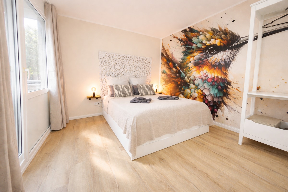 Soleggiato, tranquillo e personale – il mio appartamento non è un tipico Airbnb, ma un rifugio progettato con amore nella zona più bella della città. Qui troverai un'atmosfera da villaggio, giardini e case in legno, pur essendo molto vicino al centro città, ai parchi e alla natura. Ideale per tutti coloro che apprezzano l'atmosfera e l'autenticità.