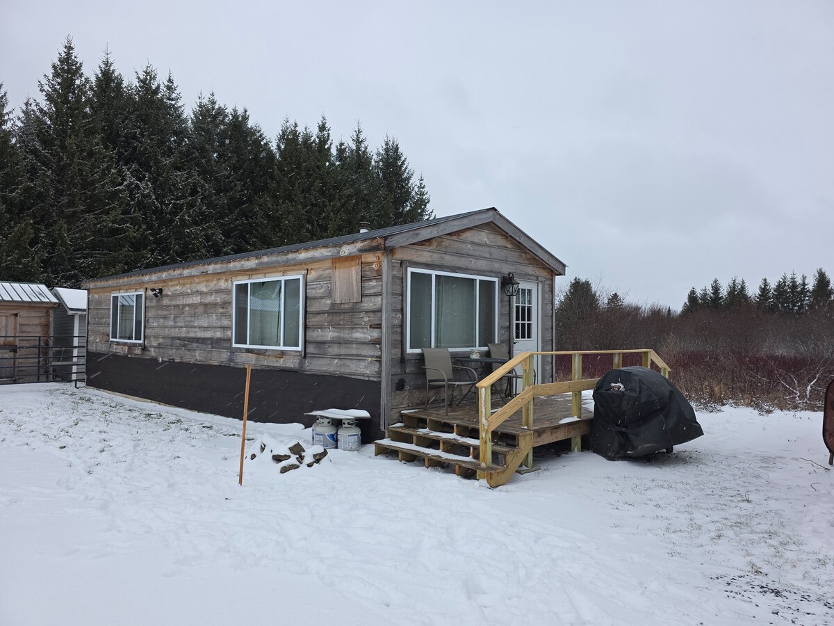 Vieni a scoprire com'è vivere in una minicasa! Questo grazioso cottage è immerso in un grande melo. Il nostro rustico chalet con letto matrimoniale è un'accogliente e rilassante meta per due persone, con un grande portico schermato. Ci troviamo lungo il sentiero principale per fuoristrada, basta entrare! Ci sono trentasette acri con sentieri escursionistici dappertutto, e il Big Brook confina con un lato della proprietà. Goditi la nostra vacanza nel Maine settentrionale!