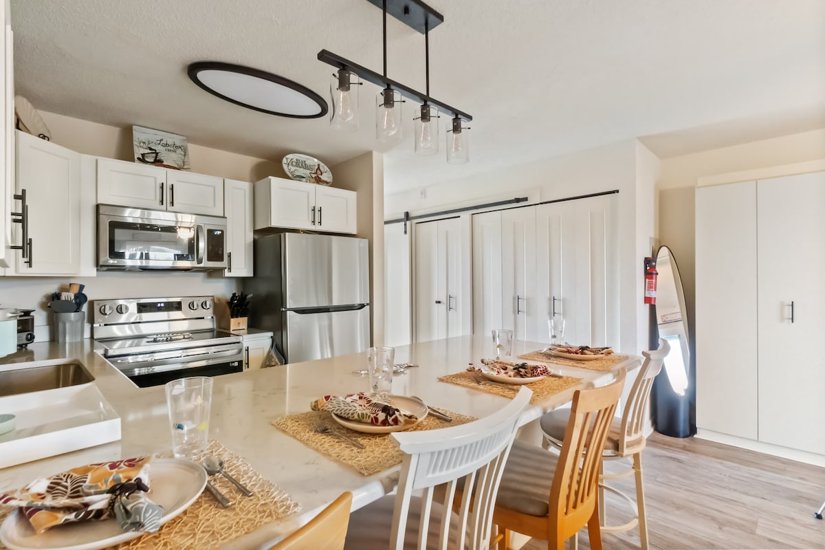 Loft spazioso | Soggiorno open space | Cucina completa + bar Unità #8 Loft open space luminoso e spazioso con quattro letti matrimoniali posizionati alle estremità opposte per garantire la privacy all'interno di uno spazio completamente aperto. Goditi un bagno completo, una grande cucina con elettrodomestici di dimensioni standard, posti a sedere al bancone della cucina e un tavolo da pranzo, perfetto per rilassarsi, mangiare o lavorare. Moderno, flessibile e confortevole, questo loft è l'ideale per il tuo prossimo soggiorno al mare. *Telecamere di sorveglianza esterne sulla proprietà*