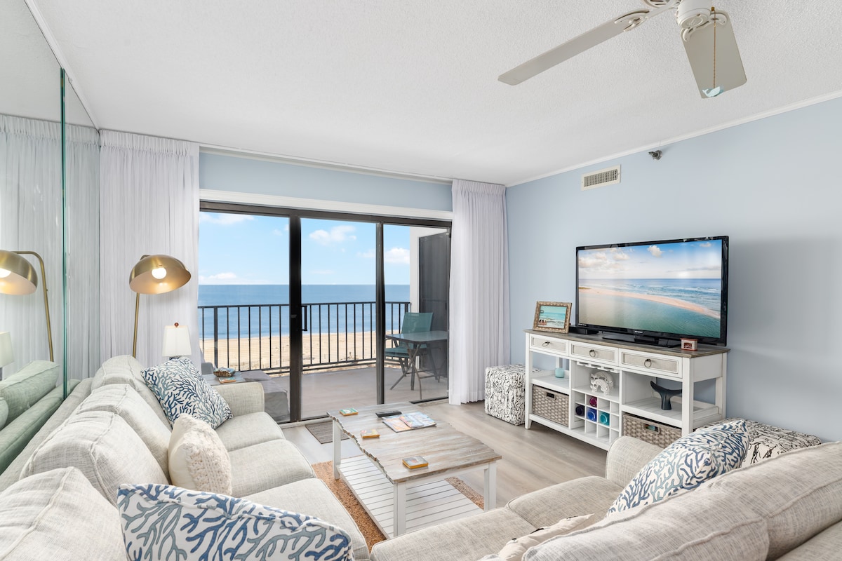 Svegliati con vista panoramica sull'oceano al Blue Wave, un appartamento fronte oceano con 2 camere da letto e 1,5 bagni, recentemente ristrutturato, nel prestigioso Golden Sands Resort! 6 posti letto con letto king size, letto queen size e divano letto queen size. Goditi il tuo balcone privato, piscine interne ed esterne, spiaggia privata, centro fitness, sale giochi, tennis, pickleball e tiki bar stagionale. Rilassati con una Smart TV + Xbox Series S con Gamepass! A pochi passi dalla spiaggia, vicino a Northside Park, ottimi ristoranti e il lungomare di Ocean City!
