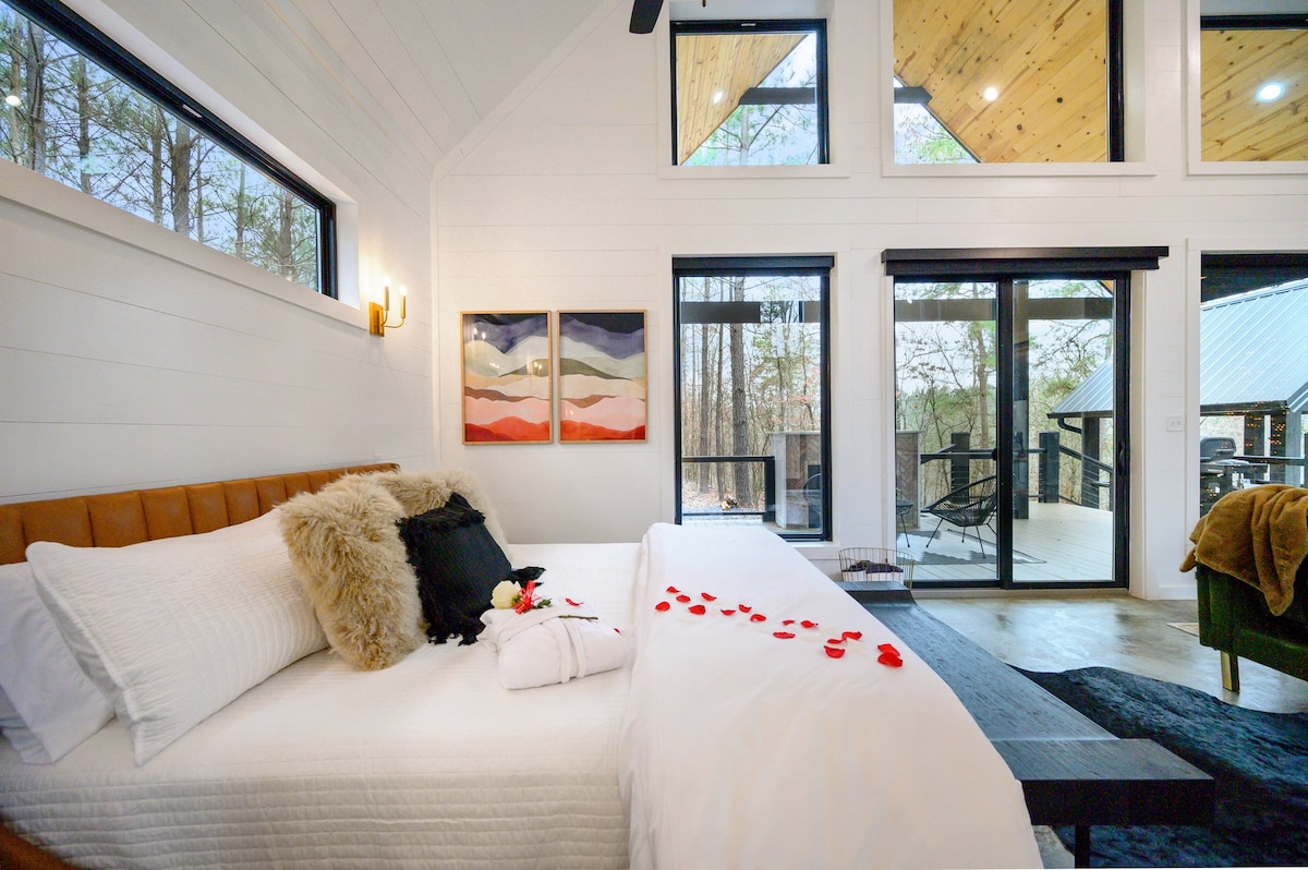 Modern Luxury Cabin | 2 King Suites • EV Charger • Pet-Friendly Discover The Modern—a stunning, design-forward cabin on 3.5 private acres in Broken Bow. Featuring soaring 18-ft ceilings, large windows, an all-white chef’s kitchen, wood stove, and 2 luxe king suites (one w/ soaker tub). Enjoy forest views, cozy up by the fire, and charge your EV onsite. Dog-friendly too! Book your unforgettable getaway today.