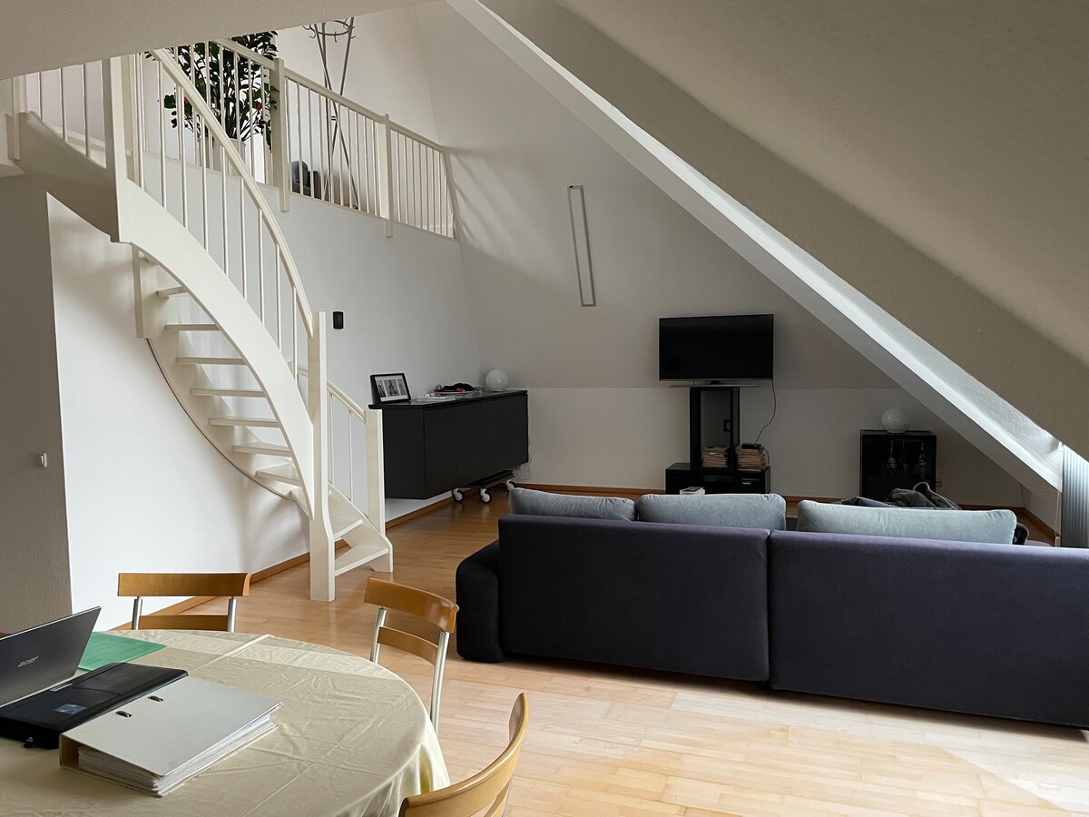 Per favore scrivimi se il tuo appuntamento non è disponibile. Ti aspettano 2 belle camere da letto, ciascuna con 1 letto matrimoniale (160x200). Inoltre, 1 soppalco (140x200) e 1 divano letto molto comodo (130x200) e un grande divano letto (150x200) e il letto matrimoniale (160x200) nella stanza del giardino. Inoltre, una cucina moderna, un bagno chic con finestre e una terrazza arredata. Gli oggetti privati sono ridotti al minimo. 5 min. a piedi da Eurogress o Tivoli, 15 min. dal municipio/duomo.
