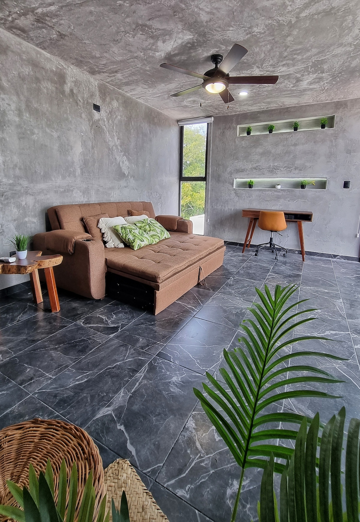 Ti diamo il benvenuto nel tuo rifugio a Temozón Norte, una delle zone in più rapida crescita di Mérida, che conserva ancora la sua tranquillità e l'ambiente naturale. Il nostro appartamento con una camera da letto è l'ideale per rilassarsi e divertirsi: dispone di un letto king size, un armadio, un bagno privato e un comodo divano letto matrimoniale nel soggiorno per ospiti aggiuntivi. Goditi la tua piscina privata sulla terrazza o approfitta dei servizi dell'edificio come la palestra, la piscina comune, il parco per animali domestici e la sala eventi.