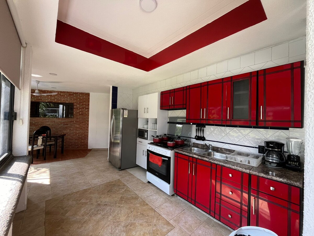 Casa in una splendida casa privata con tutto il necessario per trascorrere un ottimo weekend in un'atmosfera familiare. A 15 minuti da Cuernavaca In zona privata ha un giardino di 60 mq, sala da pranzo, cucina, frigorifero, ventilatori, TV via cavo e due camere da letto. Nelle aree comuni, una grande piscina con chapoteadero, palapa, barbecue e ampi giardini, oltre a una fontana illuminata. Parcheggio per 1 auto. Servizio TV via cavo e WIFI. Non sono consentite feste.