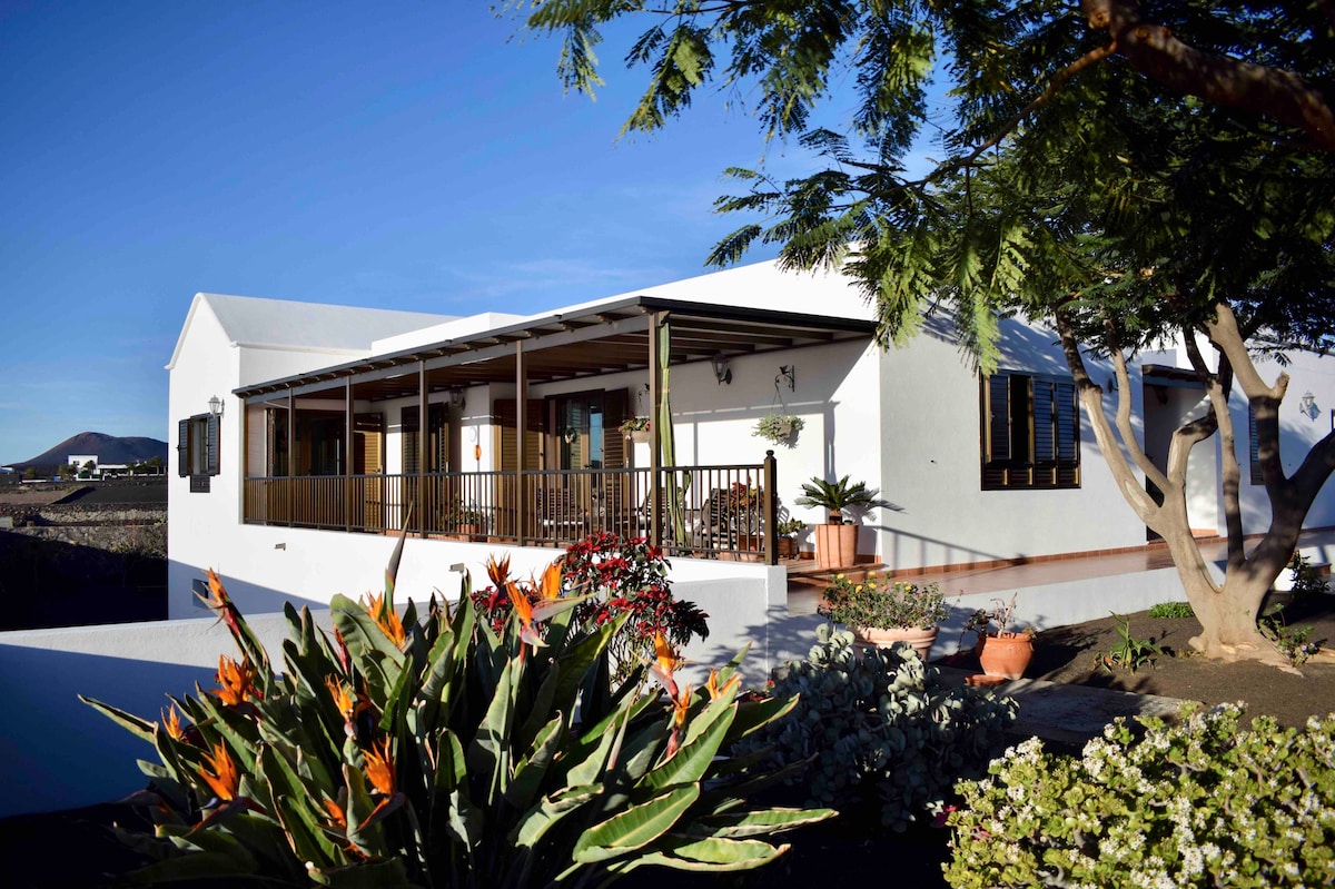 Questo spazioso monolocale fa parte di Villa NaJoSa, situata sulla collina nel piccolo villaggio appartato di Las Brenas, lontano dai turisti e dalla vita notturna, in un quartiere molto sicuro e accogliente, a 15 minuti in auto dalle spiagge dorate di Papagayo, a 5 minuti in auto dalla spiaggia nera e a 10 minuti in auto da Playa Blanca. L'enorme giardino privato offre viste mozzafiato sull'oceano Atlantico e sul vulcano Timanfaya. Tramonti incredibili! È accessibile alle persone in sedia a rotelle e dispone di un parcheggio direttamente di fronte all'ingresso privato.