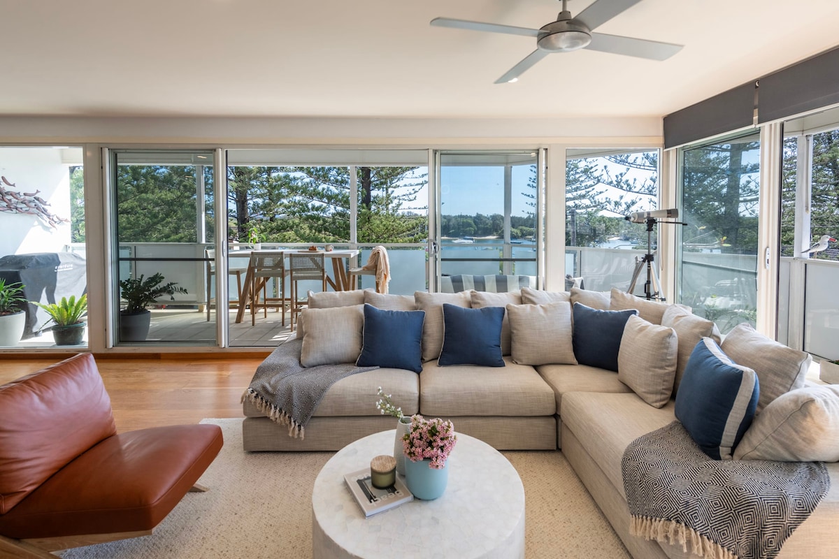 Questo appartamento con 2 letti matrimoniali è stato splendidamente ristrutturato e presenta un arredamento moderno in stile marinaro. Si trova proprio di fronte a Main Beach, con facile accesso alle spiagge di Convent e Pippi. Vicino a ottimi bar, negozi, ristoranti e all'iconico Pacific Hotel/Pub. Wifi e biancheria inclusi.