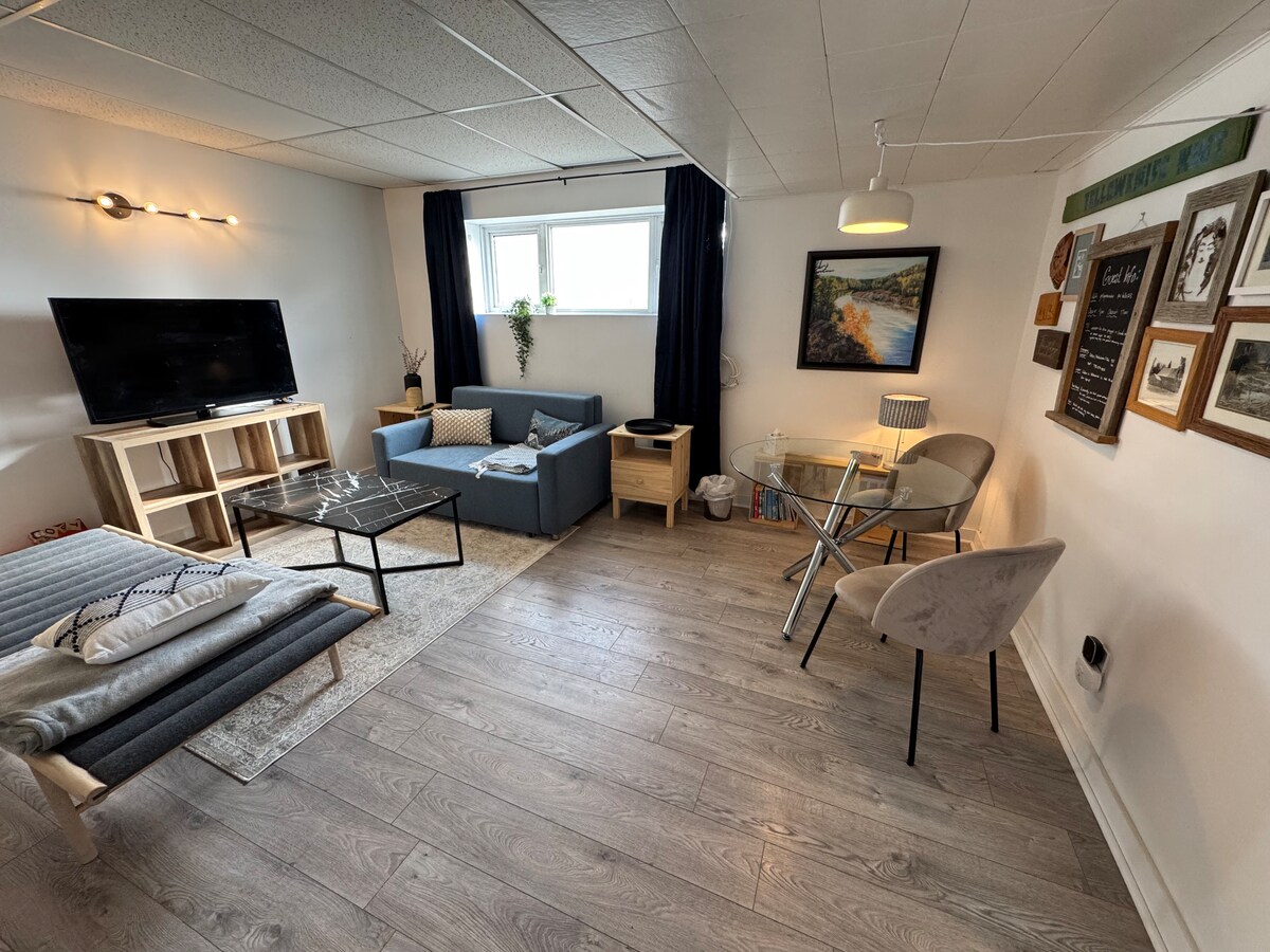 Una fuga sul lago nel cuore della città! Goditi un appartamento seminterrato con una camera da letto situato sul Niven Trail, a soli 5-7 minuti a piedi dal centro e dal museo. C'è anche un letto a due piazze nascosto in un mobile Murphy nel soggiorno. L'appartamento è dotato di cucina completa. Perfetto per chi viaggia per lavoro, avventurieri, coppie o famiglie con bambini piccoli. Viviamo nella casa principale, quindi siamo sempre disponibili per aiutarti a rendere il tuo soggiorno spettacolare come i Territori del Nord-Ovest.