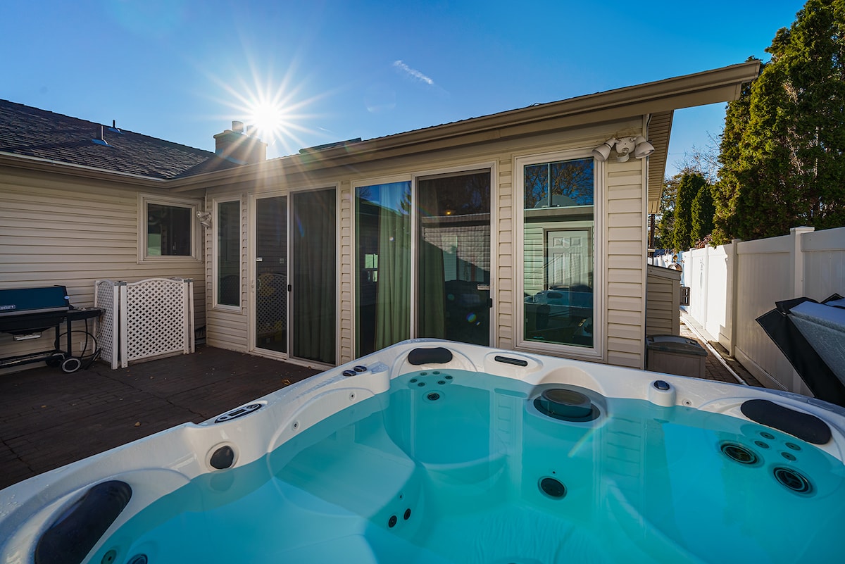 Soggiorna nella nostra accogliente casa con una camera da letto e suocera. Rannicchiati vicino al caminetto a gas indipendente con un buon libro, oppure crogiolati nell'oasi all'aperto attrezzata con vasca idromassaggio, tavolo da patio e sedie, barbecue e macchina Coca-Cola. All'interno, rilassati nella camera da letto con aria condizionata e un comodo letto. Questo rifugio cittadino ti garantisce tutti i servizi di una casa e una vacanza tranquilla. Vieni a soggiornare da noi e scopri il massimo in termini di relax e comfort!