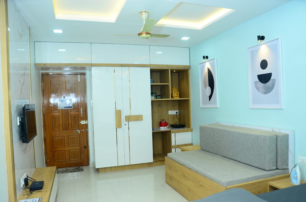 Welcome to our cozy, independent studio on the 2nd floor, featuring a private entrance, attached bathroom, and access to a beautiful terrace. Enjoy peaceful sunrises and sunsets with tea, city views, and a relaxing walk. Just 300 meters from NH47, 1.4 km from KLE Hospital, and 5 km from the Central Bus Stand, it's a perfect base for travelers. Ideal for comfort, convenience, and a touch of serenity during your stay. Please check house rules before booking.