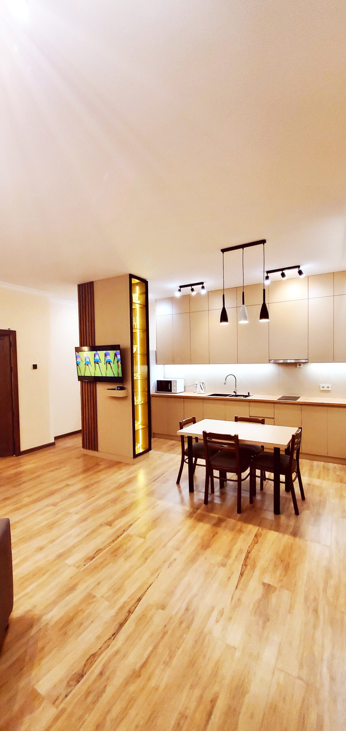 Apartments on In Yerevantsu Street 2 are the perfect choice for both leisure and business trips in the very heart of Yerevan, right next to Northern Avenue. Guests have at their disposal a bedroom with an orthopedic mattress, a studio-style living room with a sofa, dining area, air conditioning, and TV, a fully equipped kitchen (including a dishwasher), a bathroom with a shower cabin, and a balcony with a view. Free Wi-Fi, premium towels, toiletries, and 24/7 security ensure a comfortable stay.