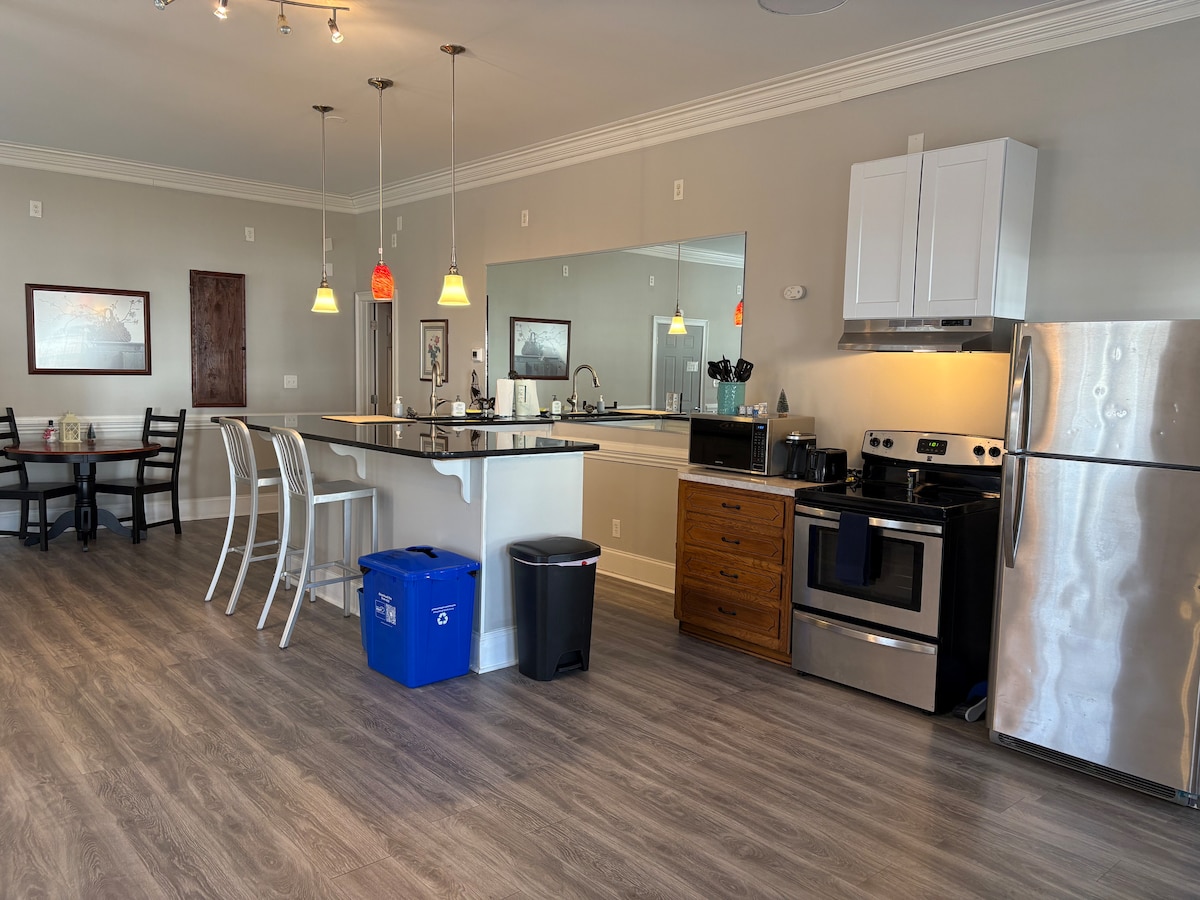 Rilassati e ricaricati in quest'oasi di quiete ed eleganza. Questo è un quartiere splendido e tranquillo, a pochi minuti dal centro di Rock Hill. A 30 minuti da Charlotte e dal lago Wylie. Bar e ristoranti sono vicini. L'unità si trova al 2° piano. Dispone di un ingresso privato e di un ampio parcheggio che può ospitare alcune auto e una barca, se necessario. C'è tutto nella suite per farti stare comodo per soggiorni lunghi o brevi. Cucina completamente attrezzata, bagno con asciugamani, ecc... e lavanderia.