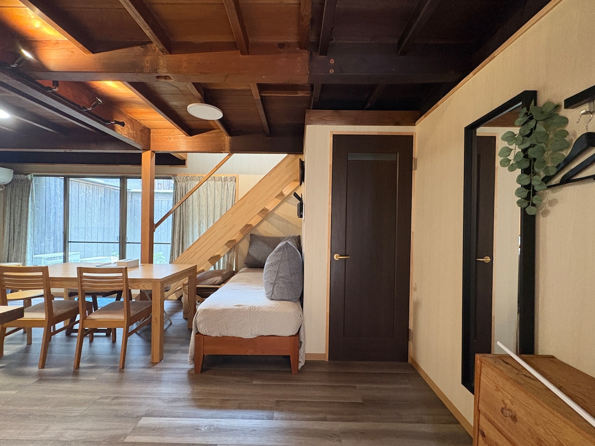 A circa 10 minuti di auto dal centro di Miyazu, nella zona di Kamimiyazu, famosa per i suoi paesaggi rurali e montani, una casa rimasta vuota per circa 3 anni è stata ristrutturata e trasformata in una struttura ricettiva. A 10 minuti dal mare, a 15 minuti da Amanohashidate e a 45 minuti dalla funivia di Ine. Non è una struttura particolarmente bella, ma ti farà trascorrere un momento di relax tipico della zona. Fondamentalmente non serviamo pasti, ma se lo desiderate potete prenotare un set di onigiri per la colazione presso la vicina caffetteria, riservato ai nostri ospiti (a pagamento) Possiamo anche organizzare per voi scambi culturali con la gente del posto, barbecue, esperienze di raccolta, tour in e-bike della zona e altro ancora. Si prega di contattare in anticipo. Inoltre, il noleggio di un set completo per il barbecue è disponibile al costo di 2.200 yen. (Sedia, fornello, carbone, accendino, dalla preparazione alla pulizia) Gli ingredienti non sono inclusi. Si prega di prepararsi. Non sono disponibili BBQ al di fuori del noleggio. Nel garage, oltre al barbecue, è possibile eseguire la manutenzione di biciclette e moto senza bagnarsi sotto la pioggia. Potete lasciarli nel nostro edificio con serratura e andare in giro per Tango in tutta tranquillità. Il parcheggio si trova proprio dietro la struttura.