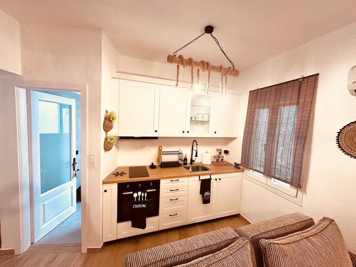 Ti do il benvenuto nel mio appartamento ristrutturato in affitto nel centro di Corfù. Un tempo era l'ufficio di mia nonna, prima che lo trasformassi in un comodo spazio abitativo. Situato in posizione strategica vicino al mercato contadino, offre facile accesso a tutti i servizi necessari. Dotato di comfort moderni, offre la combinazione perfetta di comfort e accessibilità per una vacanza indimenticabile.