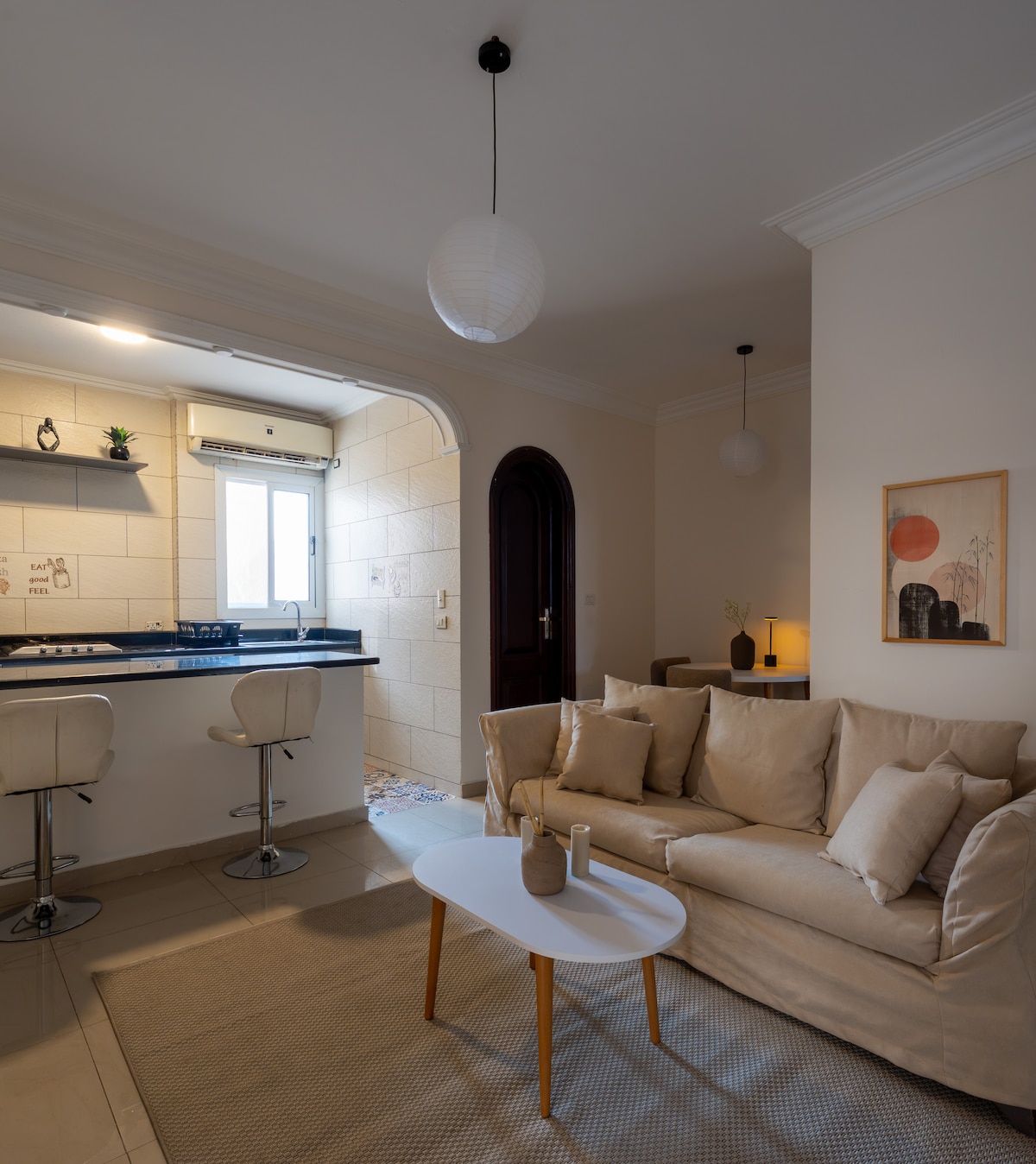 Scopri il comfort moderno del fascino egiziano in questo appartamento situato in posizione centrale nel cuore del Cairo. Sarai a pochi minuti dalle attrazioni più iconiche della città, tra cui il fiume Nilo, il Museo Egizio, il Bazar di Khan El Khalili e le strade storiche del vecchio Cairo. ✨Una spaziosa zona giorno arredata con arredi chic ✨Una camera da letto accogliente con biancheria di qualità per un soggiorno riposante Wi-Fi ✨ad alta velocità e smart TV per l'intrattenimento ✨Aria condizionata per farti sentire a tuo agio tutto l'anno Cozy Apt.