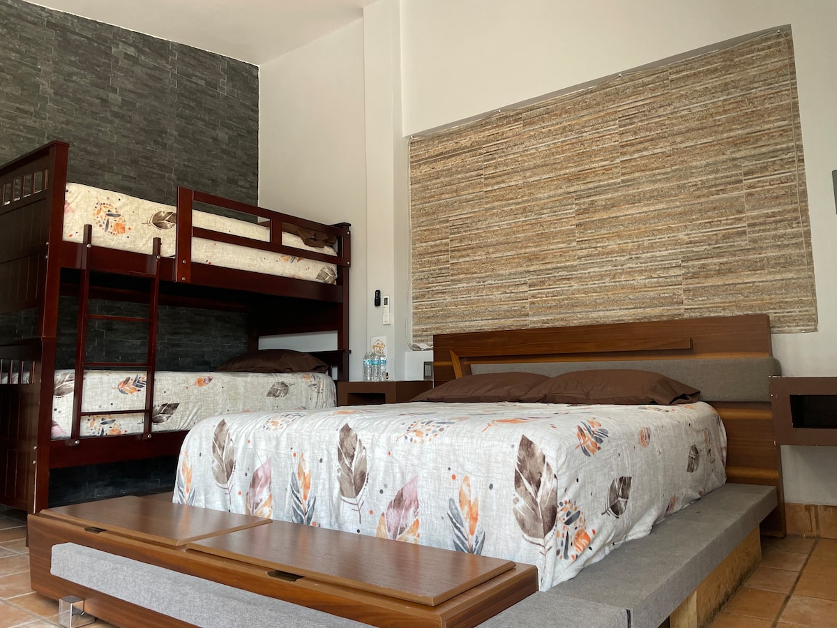Buen lugar para viaje personal, familiar o grupal. Cubre tus necesidades si acudes por ocio o trabajo. 2 habitaciones de litera mixta c/u para capacidad de hasta 6 personas; sala/comedor y cocina con lo básico indispensable para tu estancia. Servicios de WiFi y tv cable. Cochera para 1 vehículo y patio con asador. Alrededor del alojamiento encuentras todos los servicios (tienditas, ferreterías, mercado, etc). A 20 min del centro de la ciudad, con fácil acceso al lugar cercano a 3er anillo.