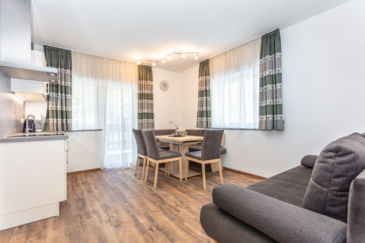 Appartamento di circa 60 m² per 2-5 persone. 2 camere da letto, ciascuna con letto a molle. In una delle camere c'è un divano letto. Ampia cucina abitabile completamente attrezzata con frigorifero, piano cottura, forno, lavastoviglie, macchina per il caffè, bollitore e tostapane. Bagno con ampia doccia e doppio lavabo, WC aggiuntivo. Il balcone è accessibile da ogni stanza.