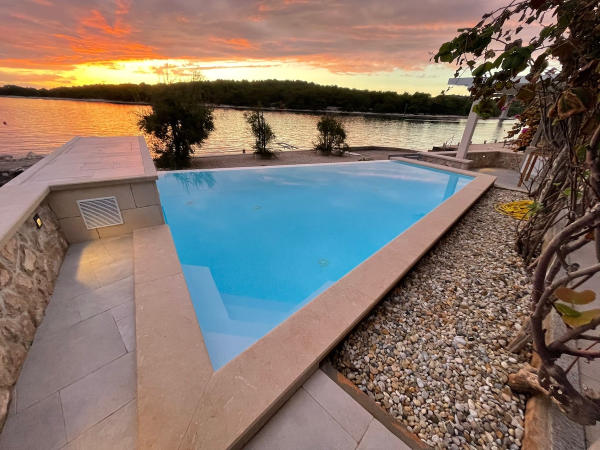 Rilassati con la tua famiglia in questa piacevole sistemazione, situata proprio sul mare. La prima fila sul mare offre una sensazione unica di riposo e contatto con la natura. Un lusso di profumi, suoni e colori che solo un'isola può avere. La casa è nuova, costruita nel 2024. Arredata in un piacevole stile mediterraneo e riccamente attrezzata. La vista sul mare è disponibile da ogni camera da letto. La distanza dal negozio e dal ristorante è di 300 m. L'isola è ben collegata da linee di traghetti da Zara e Biograd sul mare, ogni ora.
