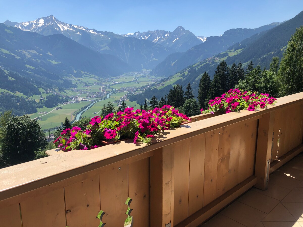 Il nostro moderno chalet alpino si trova sulla Zillertaler Höhenstraße ai piedi del Zellberg e offre un totale di 2 appartamenti "Martha" e "Rosa". Nell'attico "Rosa" vi aspettano 4 camere da letto da sogno, 2 bagni, 1 WC extra, cucina a vista completamente attrezzata con zona salotto e soggiorno con TV, 2 grandi balconi! Deposito sci con asciuga scarponi, parcheggio e Wi-Fi gratuito disponibile! Vacanza perfetta in stile casa di campagna alpina :)